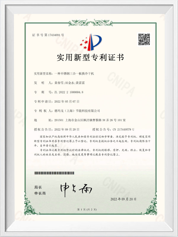 Aluminijska ploča-pečaja s tri u jednom hladnoj sušilici Model Patent certifikat