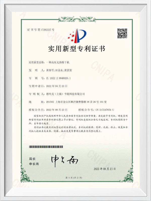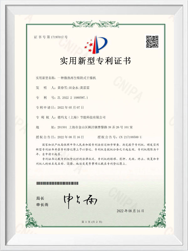 Mikro-termalni regenerativni adsorpcijski sušilica modela patentnog modela patenta