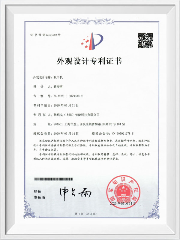 Potvrda o patentnom sušilu s prirodnim plinom otpornim na eksploziju
