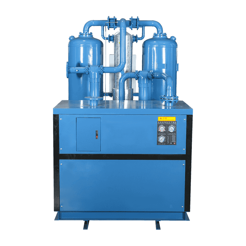 U sušilici kombiniranog mikro zagrijavanja, komprimirani zrak prvo ulazi u prednjiga za zamjenu topline suhim komprimiranim zrakom iz adsorpcijske sušilice, tako da se temperatura suhog komprimiranog zraka povećava, a istodobno se smanjuje temperatura komprimiranog zraka prije unosa, dio je ublaženog radnog opterećenja, a smanjuje se u sobnoj temperaturi. Zatim ulazi u isparivač radi hlađenja, hlađenja i odvlačenja tako da se komprimirani zrak ohladi na oko 5 ° C.